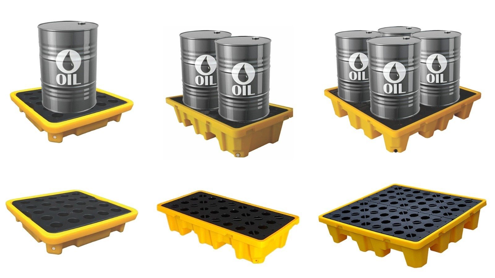 A Spill pallet is a structure that facilitates the mechanical handling of goods by the front loader, forklift, jack, etc.