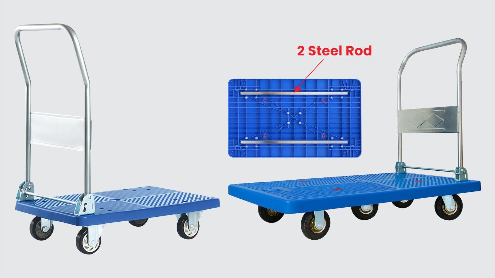 An Industrial Trolley is a sturdy, wheeled platform used to transport heavy materials in warehouses and factories.